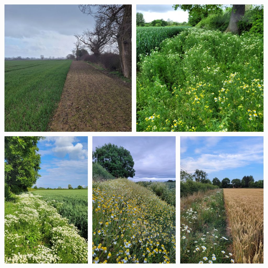As the photos above demonstrate, the field margins we introduced since arriving are now rich with flowers, insects and birds – having previously been species-poor pasture. We have enjoyed clouds of butterflies (mostly meadow browns and the odd small copper), swarms of hoverflies over the chamomile and the largest flocks of greenfinches I have ever seen.